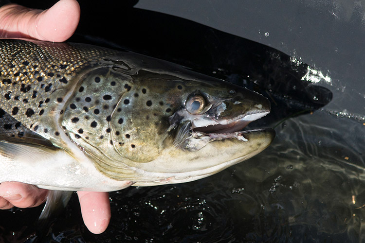 Tämän takia taimenen kalastuksessa on syytä käyttää väkäsettömiä koukkuja ja riittävän vahvoja siimoja. Kuvat on otettu Oulangan taimenhankkeen yhteydessä Venäjällä. Lue Oulangan ja muiden Suomen vesien taimenista myös Aku Ahlholmin artikkelista Tuikista.